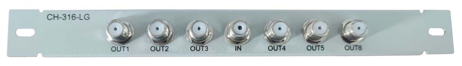 一進六出電視分配器,頻率5~1000MHz,分配損耗小於10dB,反射大於16dB,相互隔離度大於25dB,內部使用微電路板式設計,支援高畫質電視訊號。