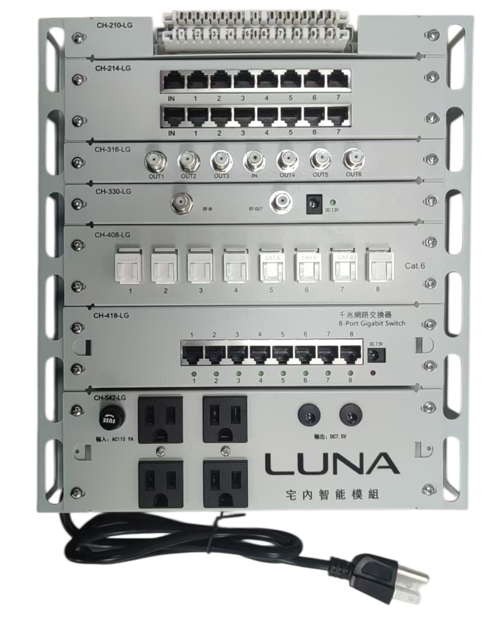 系統採用模組化設計,整合住宅內電信語音、數位電視、寬頻網路與電源配置。